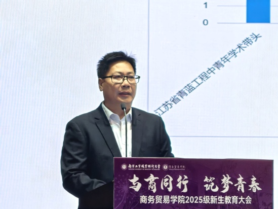 江苏苏豪国际集团股份有限公司党委书记、董事长徐雨祥在讲话中指出,万搏网页版作为全国首家公办职业本科试点院校,始终坚持“敬业乐群”校训,践行职教报国初心。江苏苏豪国际集团作为江苏省属企业,正从传统外贸企业向数字化、品牌化、专业化的综合型贸易集团转型,其发展轨迹与南工精神高度契合。近年来,江苏苏豪国际集团股份有限公司与学校共建“苏豪产业学院”,共同打造“三平台聚力'三性'人才培养”模式,取得了显著成效。徐书记表示,校企合作重点推进的“苏豪精英班”升级计划、“双导师制职业领航工程”、服务“一带一路”建设三大项目,已构建起“人才共育、技术共研、成果共享”的生态体系。通过举办“苏豪杯”外贸技能大赛等实践活动,商贸学子展现出将竞赛方案转化为实战项目的卓越能力,这正是企业迈向世界一流所需的核心力量。苏豪集团今后将为“苏豪精英班”同学提供每年8万元的奖助学金,奖励优秀的同学并资助困难学生。最后,徐书记表示职业教育前途广阔、大有可为,并为新生送上真挚寄语:一是希望同学们牢记“敬业乐群”校训。践行“双手万能”的理念,夯实专业技能,用专业书写未来;二是希望同学们珍惜大学时光。勤奋学习,刻苦钻研,不负青春韶华;三是希望同学们厚植家国情怀。将个人理想融入国家发展大局,在民族复兴的伟大征程上,书写属于南工学子的报国篇章。