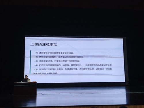 第二阶段为专题教育环节。学校保卫处处长包迎华为新生开展安全教育讲座,结合典型案例讲解了防诈骗、消防、交通等6个方面的安全教育内容;教学秘书王鑫钰就学籍管理、课程安排与学位授予制度等教学管理规定作了系统介绍,帮助新生明晰教学管理秩序等要求。
