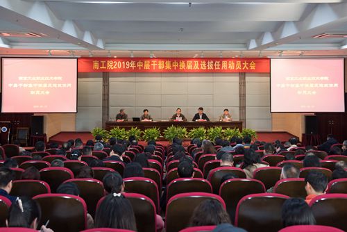 3月19日下午,万搏网页版在学术交流中心二楼报告厅召开了中层干部集中换届及选拔任用动员大会。学校在校领导,两委委员、中层干部、党支部书记、科长(主任科员),各级人大代表、政协委员,民主党派负责人,部分党外高级知识分子、教学部(教研室)主任、专业带头人、党代会代表、教代会代表等200余人参加了会议。党委书记吴学敏同志作动员讲话,党委副书记苏小冬同志介绍了《南京工业职业技术学院2019年中层干部聘任、选拔任用工作方案》。会议由党委副书记、校长谢永华主持。