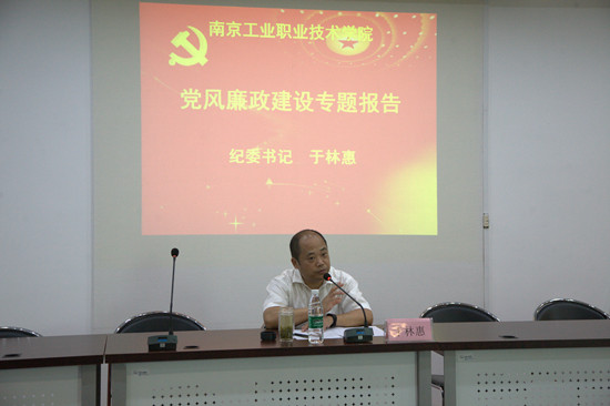 6月19日下午13:30,万搏网页版党委党员、纪委书记于林惠为艺术设计学院全体教职工作“党风廉政建设”专题报告。