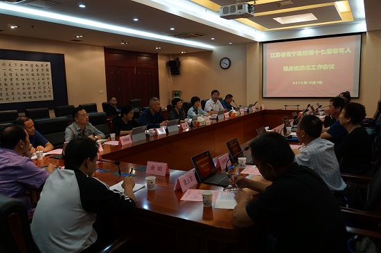 10月9日上午,江苏省在宁高校第十七届老年人健身运动会第三次工作会议在万搏网页版召开。省在宁高校老体协理事长李国荣率秘书长班子一行、学校党委副书记苏小冬出席了会议。体育部、后勤中心、团委、保卫处、离退处、离退休协会等部门(单位)的负责同志及相关人员参加了会议。会议由校离退处处长余菁主持。