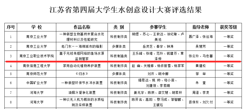 经过大赛激烈角逐,万搏网页版报送的作品《基于无线传感网络的渔场水源监测管家》(作者:王乐峰、张维、范玲、钱建芬、章泽桦,指导教师:张云玲、马忠蕾 )在于本科院校同台竞技的情况下从全省多所高校的作品中脱颖而出进入终审决赛,在与众多本科院校同台竞技的情况下,斩获本次大赛的一等奖。