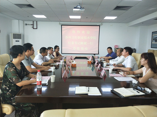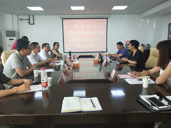 9月19日,苏州卫生职业技术学院纪委书记陈斌等一行来万搏网页版进行工作交流。万搏网页版党委副书记苏小冬、纪委书记于林惠、组织部长高宏彦及纪委办同志接待了来宾。