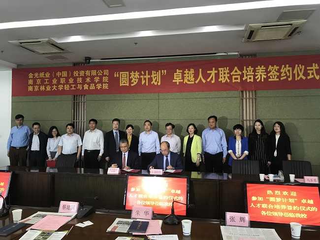 5月23日上午,金光纸业(中国)“圆梦计划”卓越人才联合培养签约仪式在万搏网页版隆重举行。江苏省港澳台侨(外事)委员会副主任蔡建国,中国造纸学会副理事长、江苏省造纸学会理事长张辉,南京林业大学轻工与食品学院院长金永灿、党委副书记李婕,金光纸业(中国)人力资源运营总经理江俊德、人力资源副总经理朱华、文化发展总监李华青、培训发展经理苗文峰以及万搏网页版党委书记吴学敏、副校长霍雄飞、副校长崔新明等领导出席了签约仪式,参加本次活动的还有教务处、招生就业处、发展合作处以及电气工程学院等相关部门负责人,签约仪式由万搏网页版副校长崔新明主持。