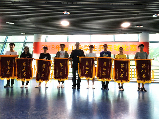 本次比赛为混合团体赛(男单、女单、混双、男双、男单),比赛办法是:第一阶段为抽签循环,需打满五场,第二阶段抽签淘汰,三场两胜。比赛在众多势均力敌的乒乓球运动员之间进行,使比赛更加精彩,直拍、横拍、旋转球、扣球、弧圈球等技术得到了一一体现,比赛中不时传出“好球”的呼喊声和热烈的掌声。经过一天的激战,艺术学院代表队、经管学院二队、电气学院一队分获冠亚季军,交通学院一队、商贸学院一队、电气学院二队、计算机学院二队和交通学院学院二队分获四到八名。