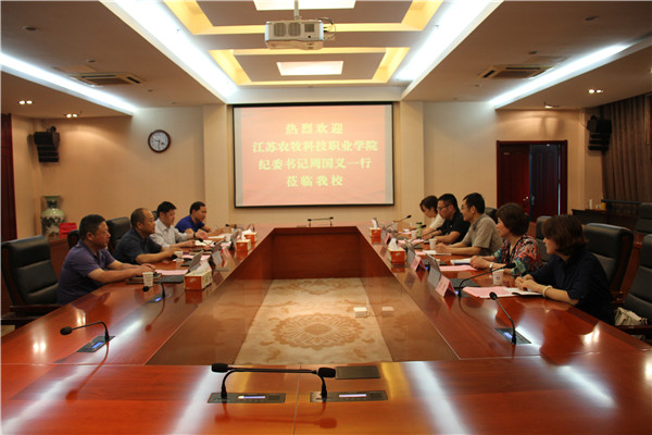 6月6日,江苏农牧科技职业学院纪委书记周国义率领相关同志来万搏网页版交流。万搏网页版纪委书记于林惠及党政办、纪委等相关负责人接待了来宾,济源职业技术学院纪委副书记赵继红参加了本次接待。