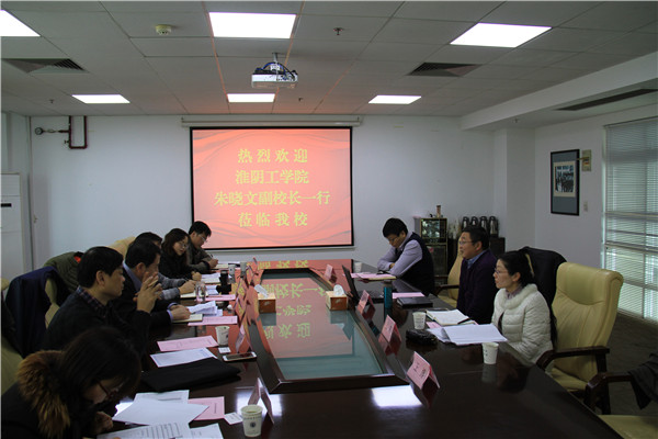 3月5日下午,淮阴工学院朱晓文副校长率领相关部门负责同志来万搏网页版进行工作交流。万搏网页版朱建国副校长以及人事处、教务处、科技处等部门负责同志接待了来宾。