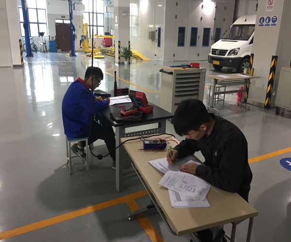 认证考试由理论考核和实践考试两部分组成,考官从汽车二级维护保养、电控发动机故障诊断、汽车电气检修等方面对学生进行了考核。认证考官对万搏网页版在考试组织、考试准备、考试实施和考试规范等方面所做的工作给与了高度评价和充分肯定,同时对学生取得的优异成绩表示祝贺。校企双方就下一步AHK认证考试的相关工作进行了深入地探讨,提出了进一步提高和完善AHK认证培训及考证的措施。